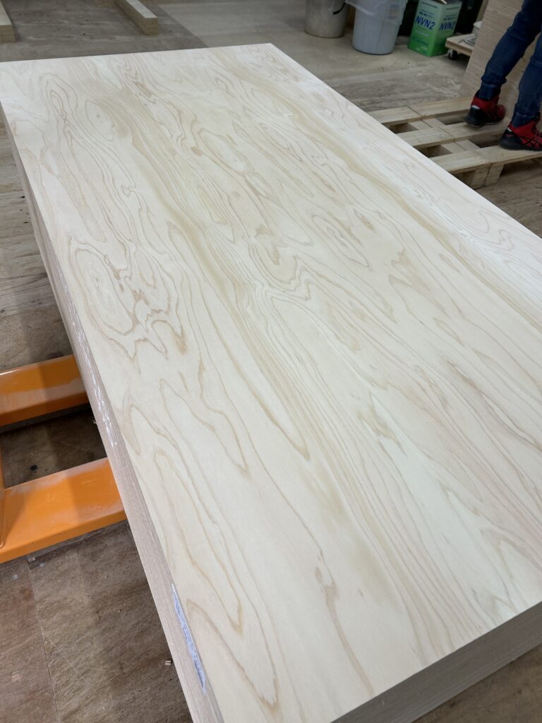 15㎜合板については現行レギュラー品での仕様でKism教材を構成します。ファイスバック桧・中芯杉となりますのでご了承ください。合板DL材に加工した場合、下記の通り表面に節、裏面には節穴が混じります。また合板に証明刻印されるJAS認定マークも合板DL材として出荷されます。